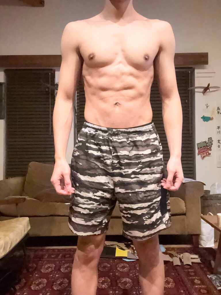 「まだまだ絞れていない」印象になりますが見た目は結構絞れていると思います。